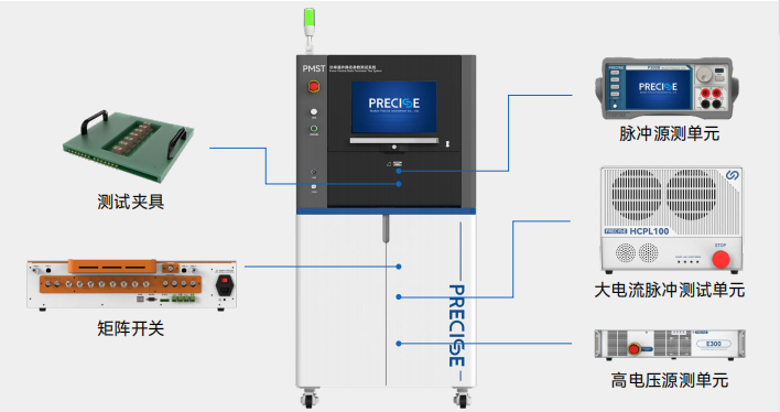 普赛斯PMST功率器件静态参数测试系统,主要包括测试主机、测试夹具、工控机、上位机软件等构成。整套系统采用普赛斯自主开发的测试主机,内置多种规格电压、电流、电容测量单元模块。结合专用上位机测试软件,可根据测试项目需要,设置不同的电压、电流等参数,以满足不同测试需求。测试数据可保存与导出,并可生成I-V以及C-V特性曲线。此外,测试主机可与探针台搭配使用,实现晶圆级芯片测试;也可与热流仪、温控模块等搭配使用,满足高低温测试需求。